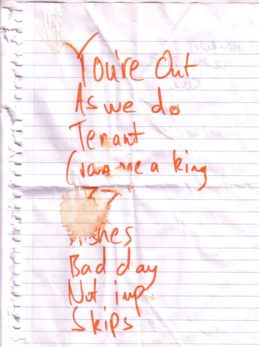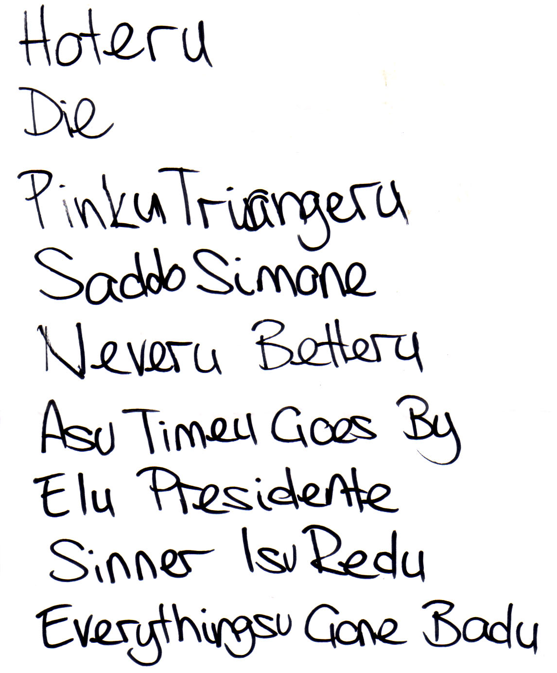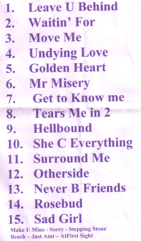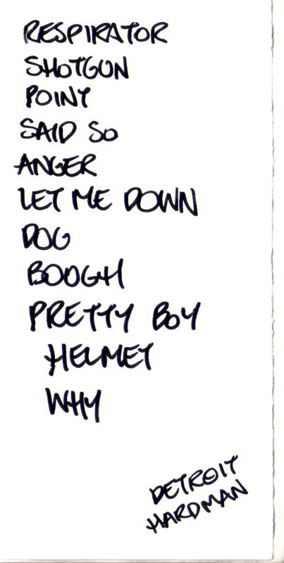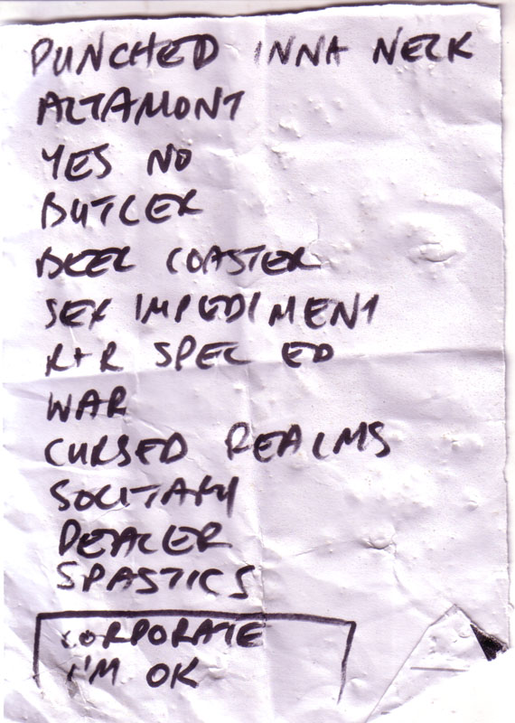1. Band announce to the crowd of about 10 people "We are the Creppter Children, you can hear this song at myspace dot com forward slash the creppter children"