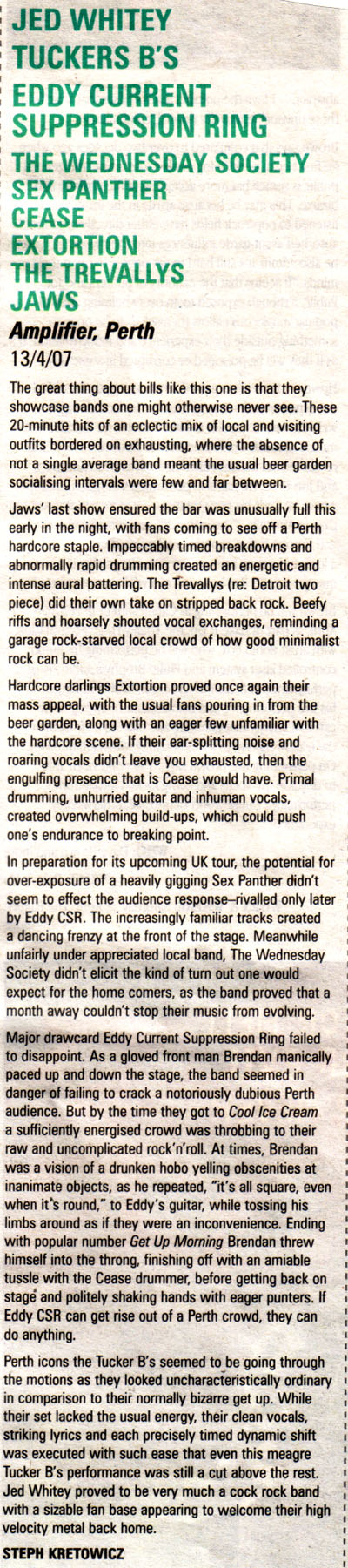 287. JED WHITEY, TUCKER BS, EDIE CURRENT SUPPRESSION RING, SEX PANTHER, WEDNESDAY SOCIETY@ Amplifier / Capitol, Friday April 13th, 2007