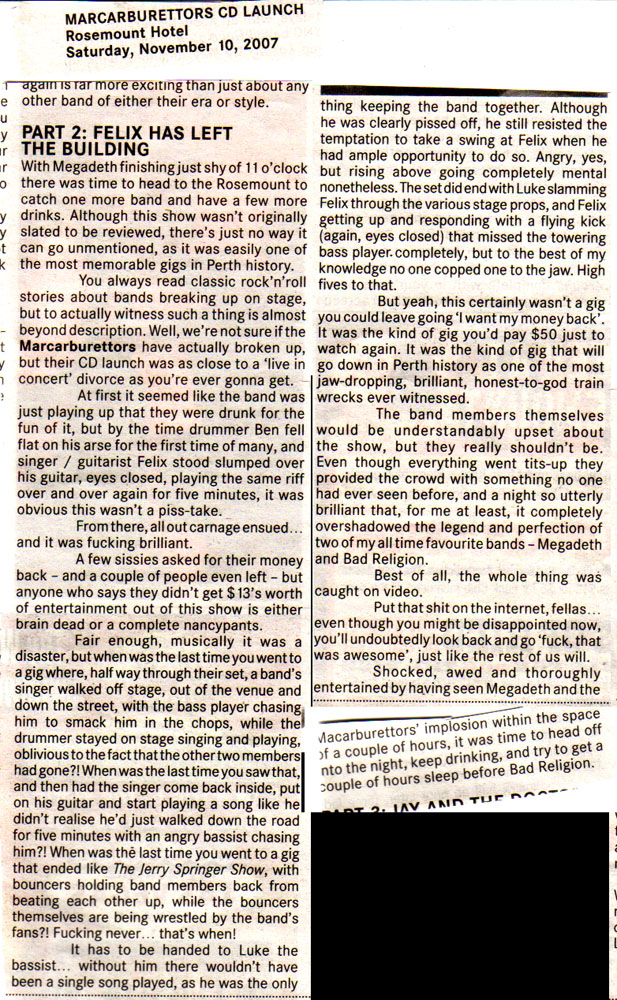 @ The Foundry, Cannington, Wednesday 14 November, 2007